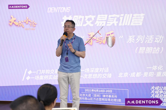 6月18日至20日,“大成小论”——“并购交易技能实训营”暨“矛与盾”——并购交易的“诉讼”与“非诉”系列活动在大成昆明办公室举行。该活动旨在使受训律师建立并购交易法律服务的整体逻辑架构从而熟练地进行并购的顶层设计,认识并购交易的关键和实质从而更全面地理解、管控并购风险、达成交易,并最终提升大成律师在公司并购交易与争议解决方面的综合水平与能力。