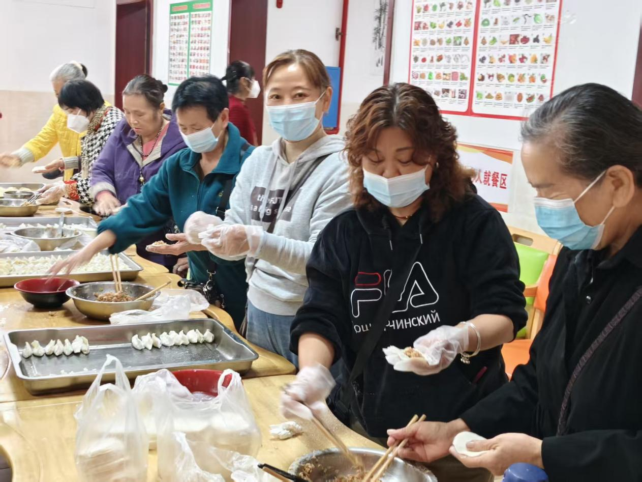 动静结合,亦雅亦俗。活动现场,节奏欢快的“拍拍操”让老人们舒展筋骨、互动交流;“巧手包饺子”环节,大家围坐一堂,边聊家常边协作,其乐融融。当志愿者们将蒸好的饺子与精心准备的凉菜、水果端上桌时,一顿充满邻里情谊的“团圆饭”将节日氛围推向高潮。