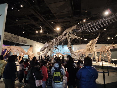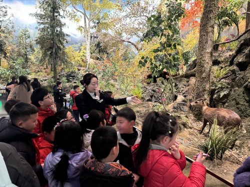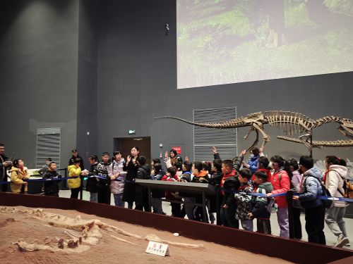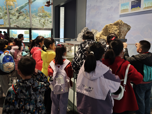 此次研学活动是芳草街街道少工委深耕青少年校外素质教育的重要举措,以成都理工大学自然博物馆为天然科普课堂,充分依托馆内地质环境、生命探源、恐龙探秘、矿产资源等特色展厅的丰富馆藏资源,让孩子们走出书本课堂、近距离触摸自然奥秘。活动围绕自然生物认知与地球演化核心知识展开,特邀博物馆专业讲解员全程带队,通过生动详实的现场讲解、沉浸式的实景观察、趣味化的互动探究等多元形式,将抽象的地质演变规律、复杂的生物进化知识转化为直观可感的体验。孩子们驻足于亿万年前的化石标本前,聆听地球沧海桑田的变迁故事,观察古生物的形态特征,在一问一答、一看一想中解锁地球密码,丰富自然科学知识储备。