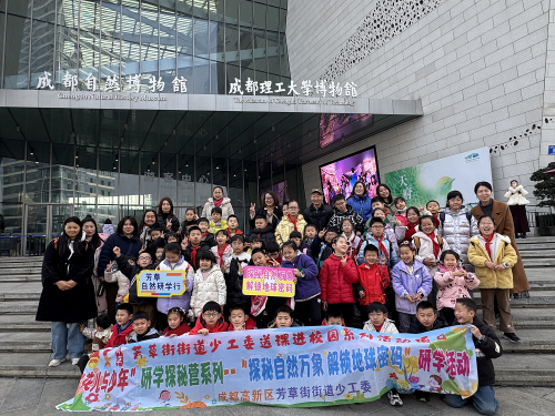 2026年2月1日上午9时30分,成都高新区芳草街街道少工委精心策划的“花儿与少年”研学探秘营系列活动——“探秘自然万象·解锁地球密码”研学活动,在成都理工大学自然博物馆温情启幕。来自辖区的50名青少年怀揣着对自然科学的好奇与向往齐聚活动现场,开启了一场沉浸式、趣味化的自然科学探索之旅。