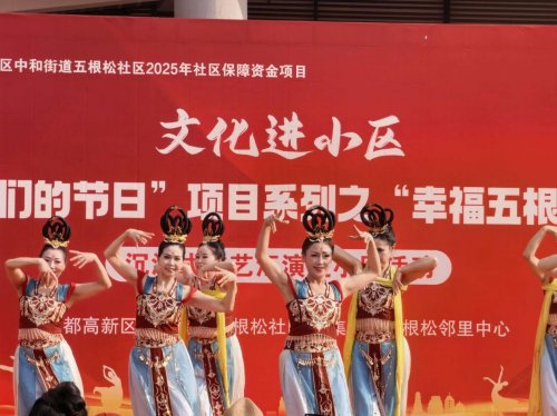 2026年1月30日下午3时,冬日的暖阳洒满社区街巷,成都高新区中和街道五根松社区携手成都友鹿社会工作服务中心、集生鲜邻里中心,在辖区内开展“幸福五根松”文艺汇演进小区主题活动。此次活动紧扣“文化进小区”工作部署要求,深度依托“我们的节日”系列主题,以沉浸式文艺汇演为核心载体,本次活动主要由文艺表演区以及幸福集市打卡体验区构成,让优质文化资源贴近居民生活、走进群众身边,切实丰富辖区居民的精神文化生活,在邻里互动间营造和睦相处、温馨和谐的社区氛围,持续打造并擦亮“幸福五根松”特色文化品牌。