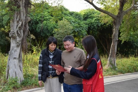 交流活动结束后,服务队前往南安溪美街道相关社区,开展红色文化宣传志愿服务。队员们兵分多路,深入社区街巷、公园广场,向过往群众发放精心打磨的宣传资料。宣传单页内容丰富实用:既系统梳理了泉州本地重要红色革命遗址、关键革命事件和代表性革命先辈事迹,让群众直观了解家乡的红色底蕴;也重点呈现了党的十八大以来我国在文化遗产保护、红色文化传承、文化产业发展等方面的历史性成就,以及“十五五”规划中关于文化建设的相关部署,让群众清晰感知国家文化发展的蓬勃态势。