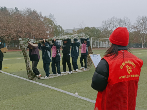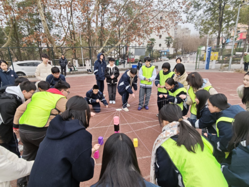 在户外拓展活动中,拓展教练带领学子们开展“坦克履带”“水到渠成”“同心筑塔”“同心鼓”四项团队协作项目。活动中,同学们分工配合、沟通协调、并肩攻坚,不仅锤炼了问题解决能力,更在互动中凝聚了集体共识,增强了团队向心力。工作人员全程做好安全保障与影像记录,定格下学子们协作共进的精彩瞬间。