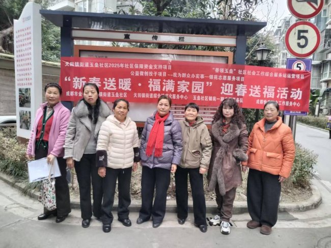为进一步弘扬志愿服务精神,营造欢乐祥和的新春氛围,2026年2月4日上午,由成都市金牛区天回镇街道玉垒社区主办,锦苑一期志愿服务队、成都市愉庆社会工作服务中心联合承办的“新春送暖·福满家园”迎春送福活动在明月锦苑一期温情启幕,活动吸引了80位居民积极参与,共赴一场充满年味与温情的新春之约。