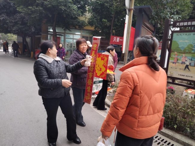 小区门口的春联发放点,同样热闹非凡。2名志愿者组成的春联发放组,有序地组织居民签到,并为签到的居民免费送上新春福袋,福袋里包含春联、福字等新春必备物品。大家脸上洋溢着幸福的笑容,互相道着新春的祝福。一份份满载祝福的福袋,不仅是新春的美好祝愿,更是社区与居民之间情感的纽带,拉近了彼此的距离,让邻里关系更加融洽。