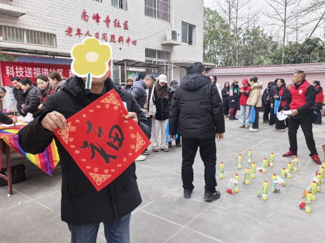 为聚焦精神障碍患者及家属的社区融入需求,搭建温暖的社交联结平台,在欢乐氛围中传递关怀与支持,2026年2月4日,东河镇精康站联合南峰寺社区举办“立春启新·邻里共欢”迎新春游园活动,吸引50余名精康患者、家属及居民参与。活动以立春“生机重启”的文化内涵为依托,将书法写春联、花艺创作等艺术疗愈项目与科普抢答、套圈圈、投壶等趣味互动环节相结合,通过文化浸润缓解心理压力,以游戏互动促进情感交流,助力患者重建生活信心,推动社区康复工作温情落地。