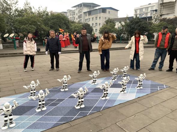 最受瞩目的科技互动区,由旺苍县科学技术协会带来的科普大篷车,满载15台形态功能各异的智能机器人惊艳亮相,它们通过送上新春祝福、开展科普问答、表演舞蹈等形式与群众亲密互动,吸引了不少居民组团与机器人PK斗舞。大家驻足围观,积极参与问答,现场气氛十分热烈。