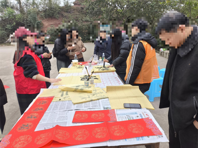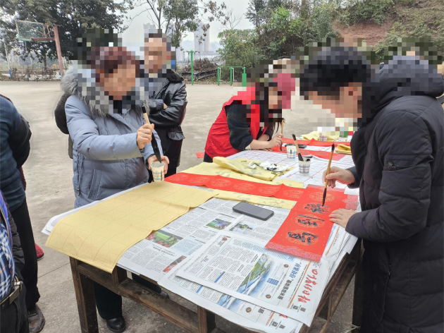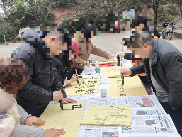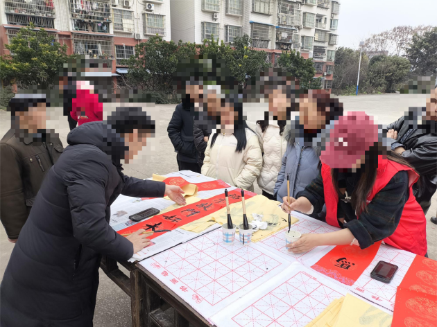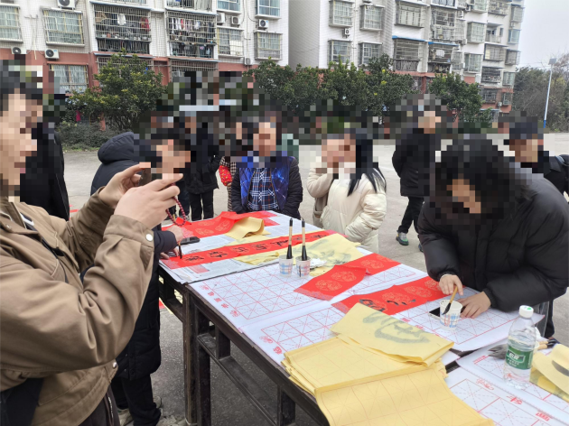 2026年2月4日上午,新春佳节将至,以“翰墨润心・执笔愈情—书法艺术融入康复之路”为主题的社区活动在邻水县鼎屏镇安康小区广场温情启幕。本次活动由南充博方社会工作发展中心策划实施,面向鼎屏镇精神障碍康复者及其家属、社区居民,以书写“福”字和春联的传统年俗为载体,搭建艺术疗愈与社区共融的桥梁,让传统文化的温度浸润康复之路。