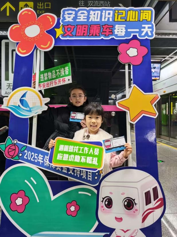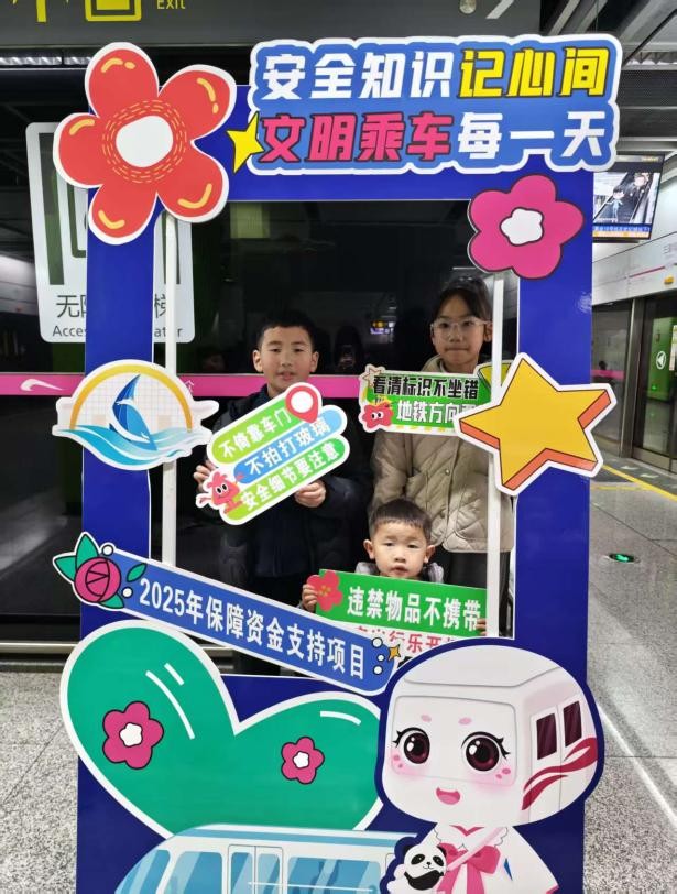 随后,亲子家庭搭乘地铁,沿双流西站、三里坝站、迎春桥站这一路线开展沉浸式学习。三座车站同步设置了特色互动点位,通过游戏的方式深化安全知识。孩子们在实践中进一步巩固了安全出行意识,寓教于行,收获满满。