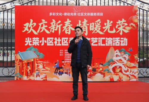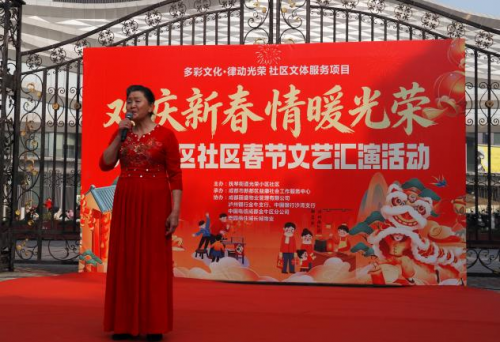 腊梅吐蕊,新春将至。为迎接2026年新春佳节,营造喜庆祥和的社区氛围,丰富居民精神文化生活,增进邻里情感,光荣小区社区联合益康社会工作服务中心于2月6日上午9:00在懋园1号门成功举办“欢庆新春·情暖光荣”春节文艺汇演活动。活动由抚琴街道光荣小区社区主办,成都市新都区益康社会工作服务中心承办,并得到中国电信抚琴分局、成都丽盛物业管理有限公司、懋园长城物业、泸州银行金牛支行、中国银行沙湾支行、农商银行沙湾分理处、晓乐艺术等多家单位的大力支持,现场百余名居民欢聚一堂,共迎佳节。