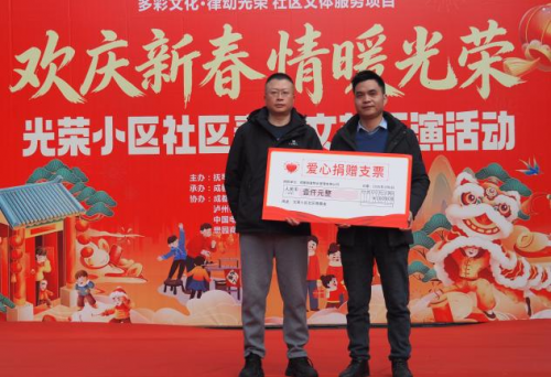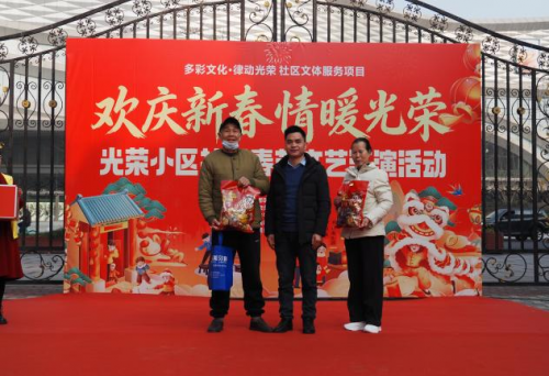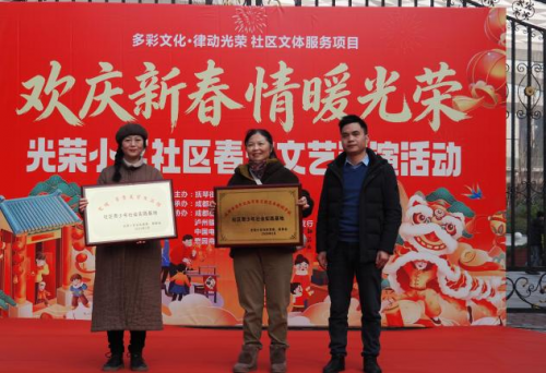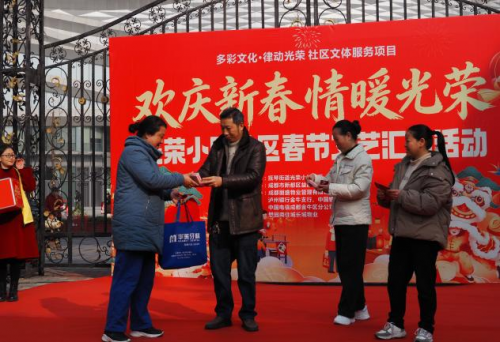 活动在社区腰鼓队热情澎湃的《迎新春》表演中正式拉开帷幕。光荣小区社区党委书记赵长文首先登台致辞,向全体居民致以诚挚的新春祝福,并展望了社区和谐发展的美好愿景。随后,现场举行了简约而庄重的社区青少年社会实践基地授牌仪式,成都市金牛区乐学家文化艺术培训学校、梵境芳香美学生活馆两家单位获颁首批基地授牌。在温情涌动中,成都丽盛物业管理有限公司汇龙湾生活广场代表徐斌先生现场向光荣小区社区微基金捐赠1000元整,以实际行动助力社区帮扶与公益事业,传递企业温度。