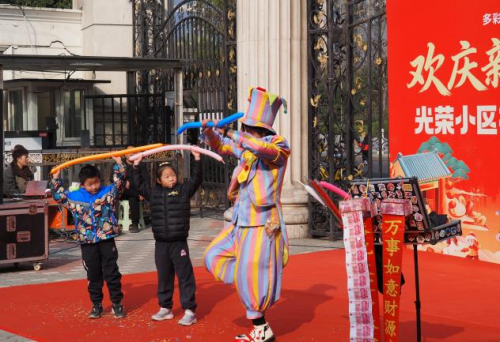 文艺演出环节精彩纷呈,高潮迭起。舞姿舞蹈队以舞蹈《张灯结彩》舞出红火年味;社区“安全无忧”先锋志愿服务队自编自演的情景剧《平安是福》,以生动形式倡导社区安全;光荣广场舞队带来的《上春山》舞步轻盈,展现绿色家园向往;光荣水兵舞队则通过快板朗诵《垃圾分类》,巧妙宣传文明新风;光荣太极拳队的《八法五步》表演,刚柔并济,尽显传统养生智慧。此外,深情独唱《我属于你,中国》《爱的奉献》以及妙趣横生的小丑气球魔术互动等节目,不断点燃现场气氛,赢得居民阵阵掌声与欢笑。