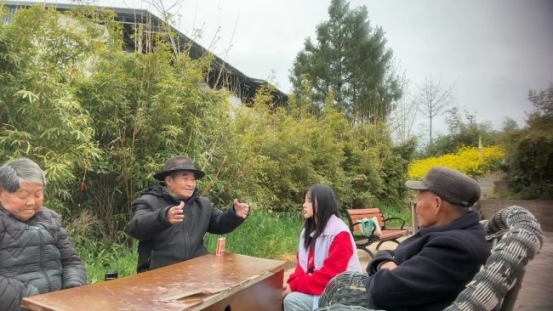 春日的太公镇红军山,翠竹掩映,草木萌发。在一处村民休憩的小院里,几位白发长者围坐而谈,社工与青年志愿者俯身倾听,一场跨越时空的红色对话缓缓展开。戴着宽檐帽的老人指尖轻挥,将记忆拉回八十余年前:“红四方面军的队伍就住在这山上,帮我们挑水、种地,夜里还在山坳里练兵。”