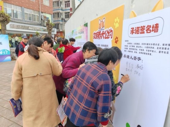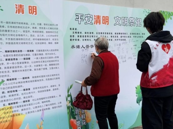 活动最后,志愿者引导居民前往承诺书墙签署台,重点明确了文明养犬、文明祭祀、节约粮食相关承诺条款,引导居民自觉承诺、主动践行。居民们纷纷驻足,认真阅读承诺书内容后,郑重签下自己的名字,用实际行动践行文明承诺,表达参与社区自治、共建美好家园的坚定决心。