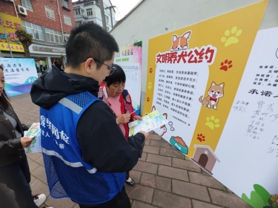 随后,网格员与暖心家园社工、自组织成员、标榜学生志愿者化身文明宣传员,向过往居民发放涵盖文明养犬、文明祭祀、节约粮食三大主题的宣传单页。志愿者结合社区实际,用通俗易懂的语言逐一讲解宣传核心内容,细致解读文明养犬注意事项、文明祭祀相关要求、节约粮食践行方法,提醒居民规范养犬、文明祭祀、拒绝浪费,让居民清晰了解文明建设的具体要求,深刻认识到文明践行与自身生活、社区发展的密切关联,进一步提升了居民的文明认知与参与意愿,推动文明理念深入人心。
