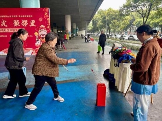 “忆时光·聚邻里”怀旧游园会活动以怀旧为纽带,设置踢毽子、投壶、滚铁环等传统游戏与竹编风铃DIY手工体验,覆盖老中青全年龄段居民。长辈们重拾童年乐趣,中青年重温青春时光,青少年感受传统民俗魅力,居民在通关打卡、动手创作中打破隔阂、畅谈往昔,微创投项目为邻里搭建起首个温情交流平台。“新街邻里亲,亲子游园乐”亲子“家庭日”活动恰逢新春前夕,活动聚焦亲子情感联结,打造糖葫芦、蛋烘糕传统美食体验,蒙眼原地踏步、亲子套大鹅等趣味互动,以及簪花手工DIY三大环节,亲子家庭在协作陪伴中增进默契,在邻里互动中感受社区温暖,微创投项目以亲子为切入点,让家庭温情与邻里情谊双向升温。“睦邻友好日,幸福邻里情”邻里互动日活动依托社区门球场,设计合力建塔、不倒森林、飞盘九宫格等协作游戏,居民们分组比拼、默契配合,在趣味挑战中消除陌生感、凝聚向心力。微创投项目以邻里互动为抓手,进一步厚植“邻里和睦、共建共享”的社区氛围。
